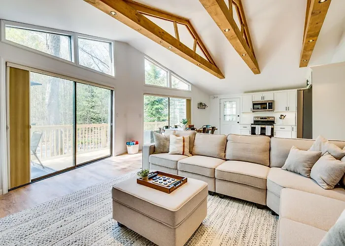 The accommodations at Bright Pocono Lake Home are designed with tranquility in mind. Each room features modern décor combined with rustic touches, providing a warm and inviting atmosphere. Guests can unwind in spacious living areas, adorned with plush furnishings and large windows that invite natural light and showcase stunning lake views. The perfect blend of comfort and nature sets the tone for a restorative stay.